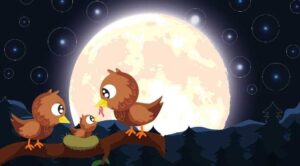 เมื่อดวงจันทร์ได้ยินเสียงนกน้อยร้อง ก็พูดขึ้นมาว่า “เจ้านกน้อยอย่าร้องไปเลย” “ฉันอยู่ที่นี่แล้ว”